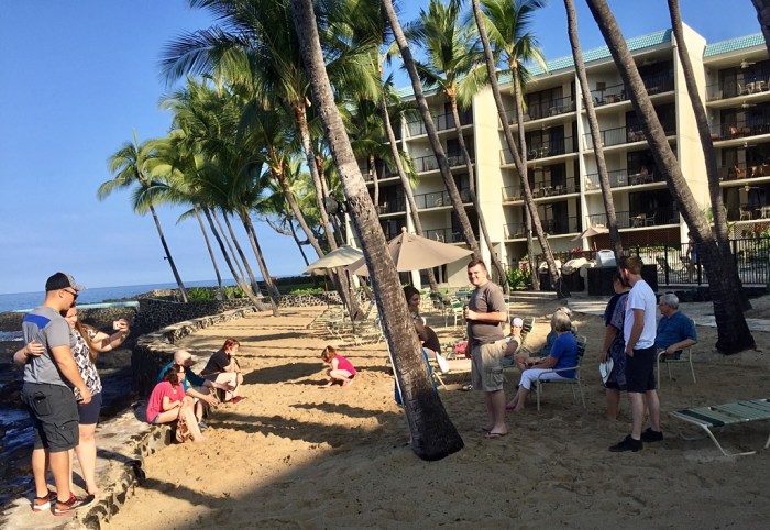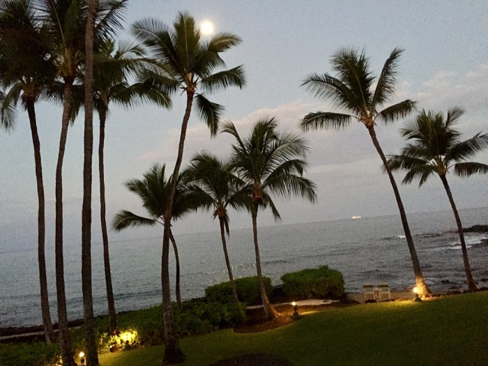 After 20 hours of traveling from Syracuse, we didn’t stay up long. My alarm had been set for 3:15 a.m. Eastern. That would be 9:45 p.m. Hawaiian. I hit the hay at 10 p.m. Hawaiian. That would be 4 a.m. Eastern … So would begin a week’s worth of figuring out what my body really felt like.