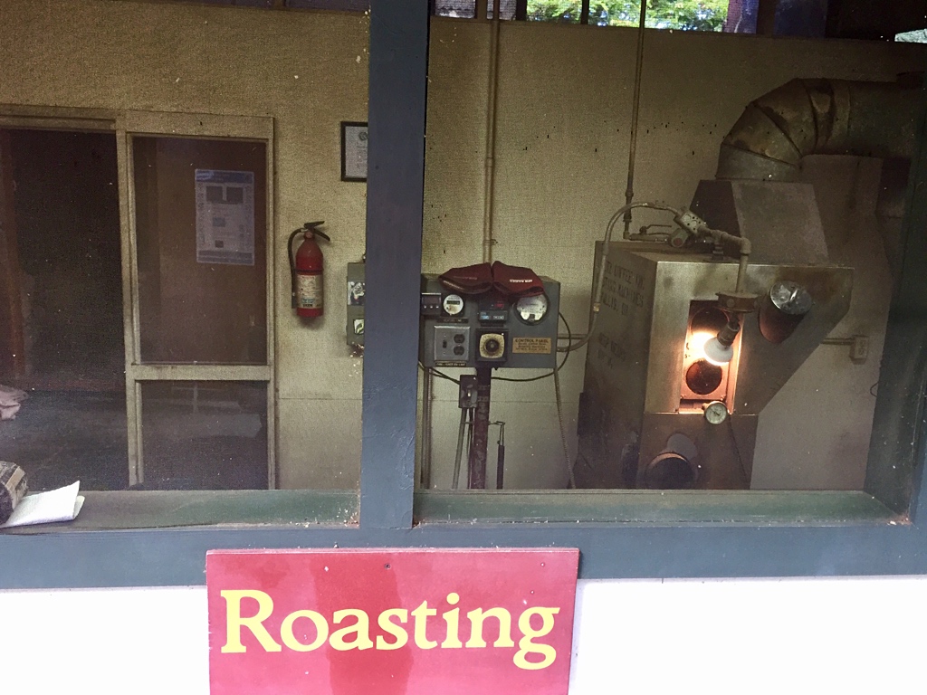 Back in the main building, I wondered where they got the beans that were roasting. But our tour guide was busy handing out samples from urns and selling in the gift shop.