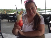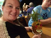 Elisabeth appreciated some sort of drink inside of a pineapple.
