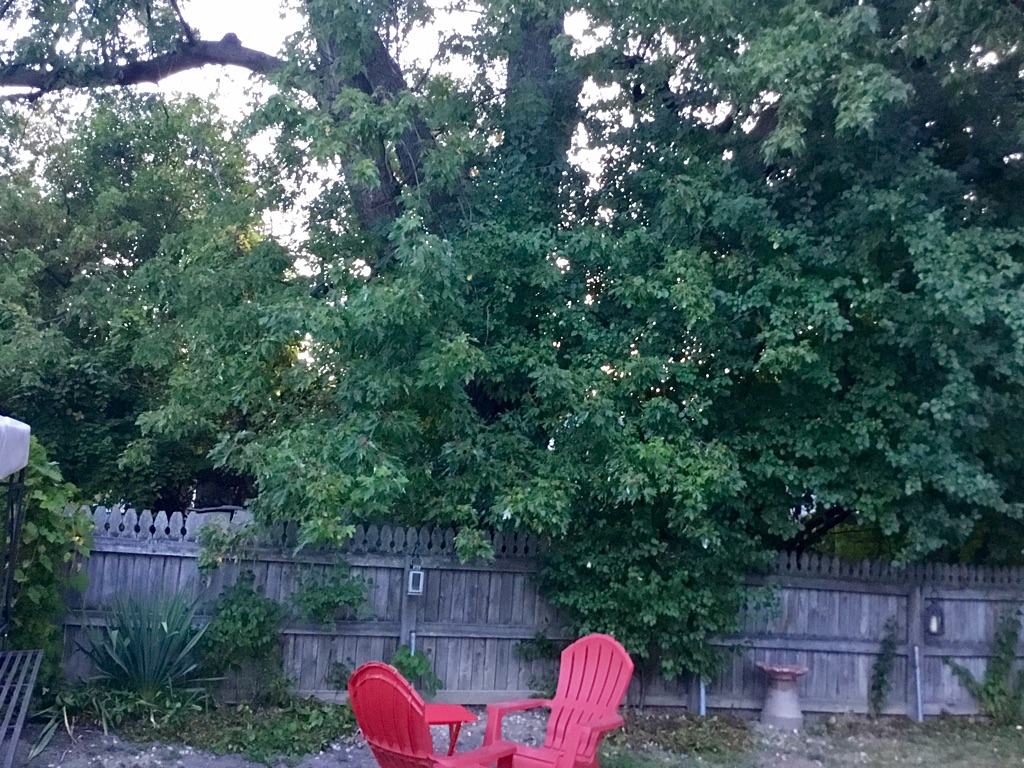 When I went out (OK, a day or so early) to check the positioning of the sun’s hello to the day in the backyard at a bit after 7 a.m., I discovered that the kiss with the horizon is blocked by the tree line on the neighbor’s east side of the fence.