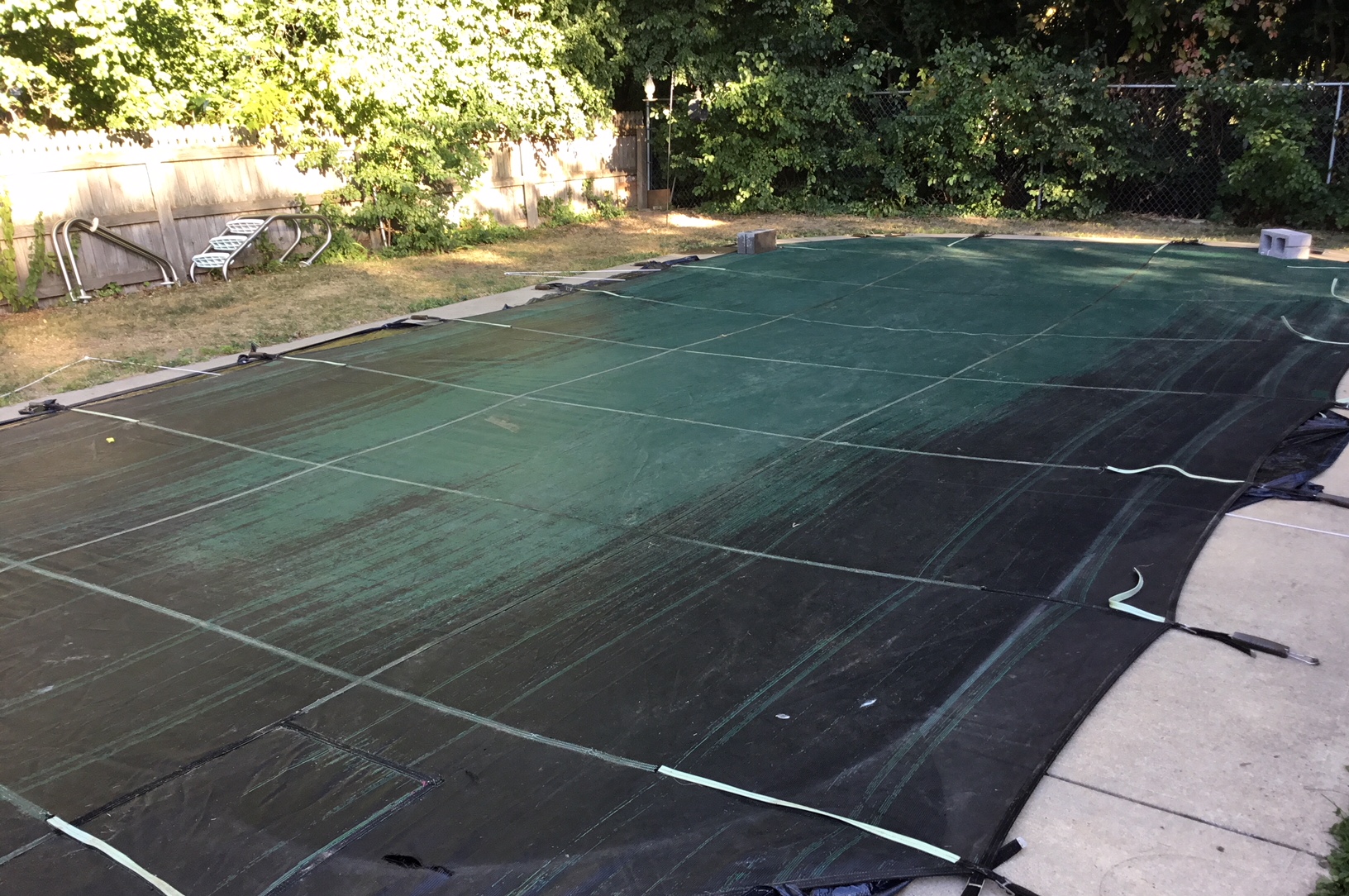 With a day to recover from the first effort, my dear wife Karen and I were back at the old safety cover for our backyard pool at A Bitty Better in our Liverpool neighborhood of Galeville.