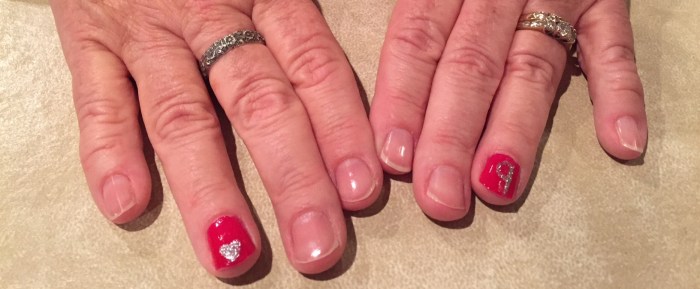 And my better half had done things up right during her break from class on a Friday, going to the folks who do nails as part of their learning plan to have a pair of customized fingertips to flash for our big celebration.