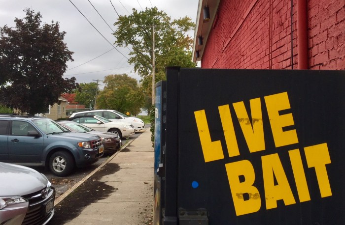 No, the blocks of First Street do not include a true bait shop. Instead, the worms turn from a soda-like dispenser.