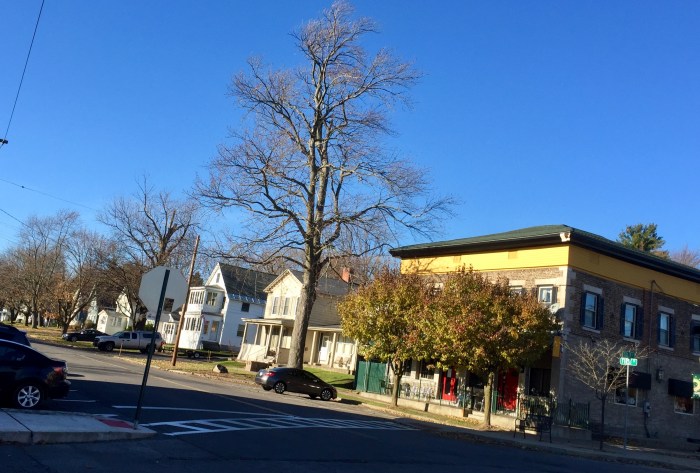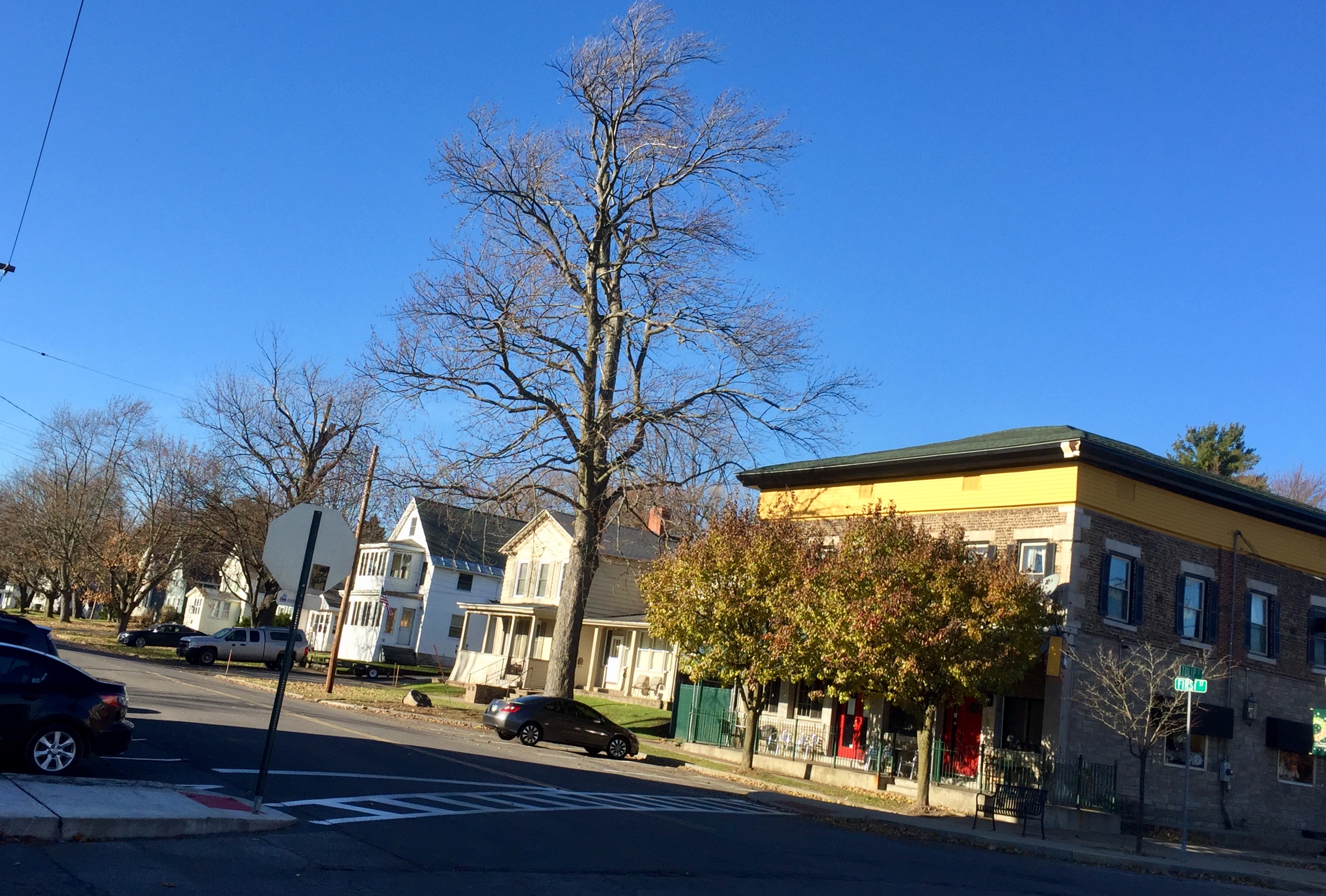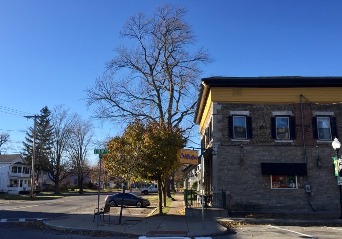 This makes for an interesting combination outside the Cobblestone in the Village of Liverpool.