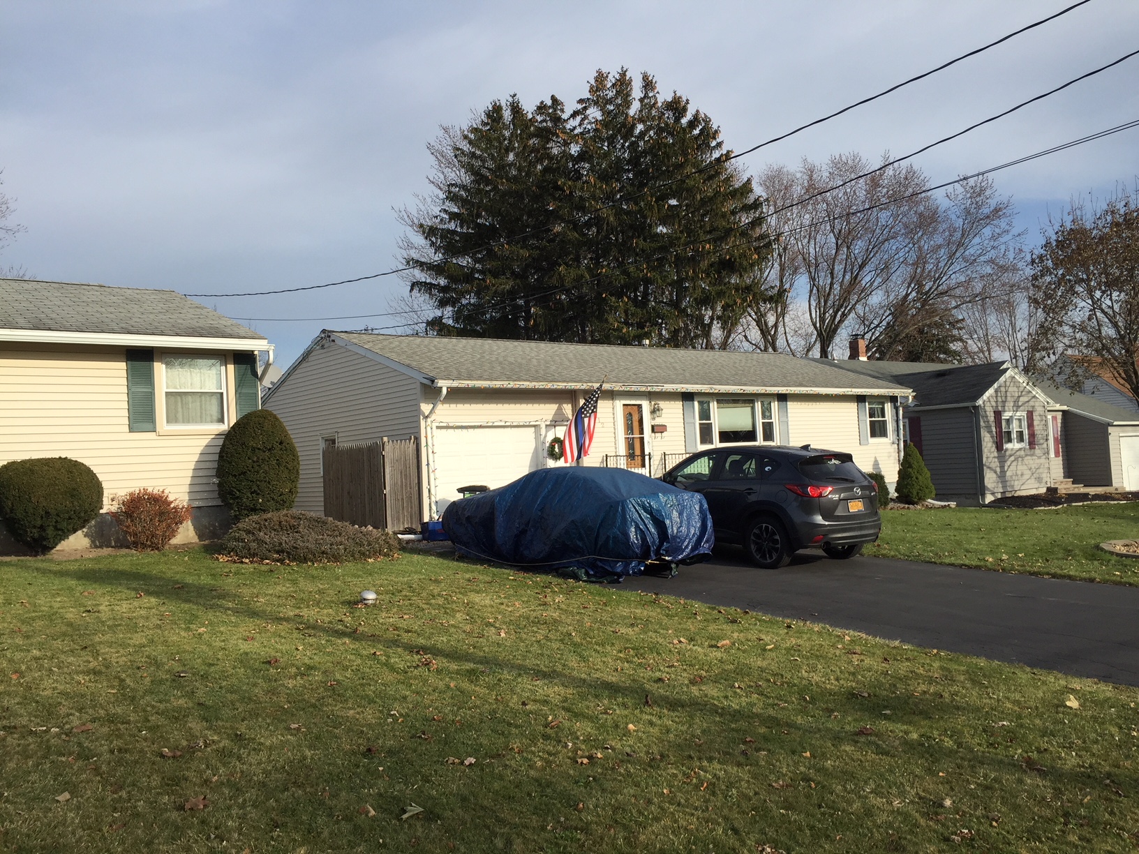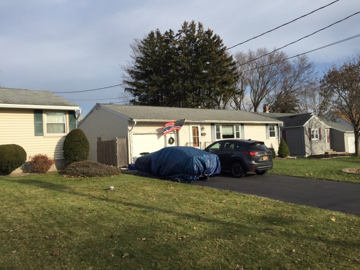 Something about a flag waving in the wind caught my eye as I walked with Ellie B aka Dogamous Pyle in the blocks around A Bitty Better in the Liverpool neighborhood of Galeville.