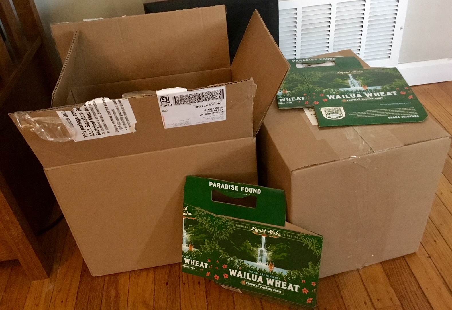 They went online to find a site that would ship them a case. We know from what they told us on our Kona Brewery tour that they brew the bottled stuff in the states. Still, this particular version of Kona is not found anywhere in New York State, so I had reconciled myself to a sad separation.