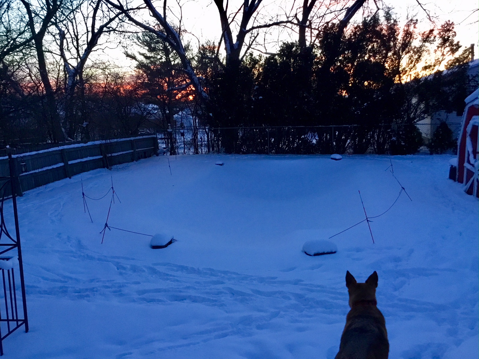 But I will show that even Ellie B aka Dogamous Pyle pauses before going out for her second morning trip into her Central New York backyard.