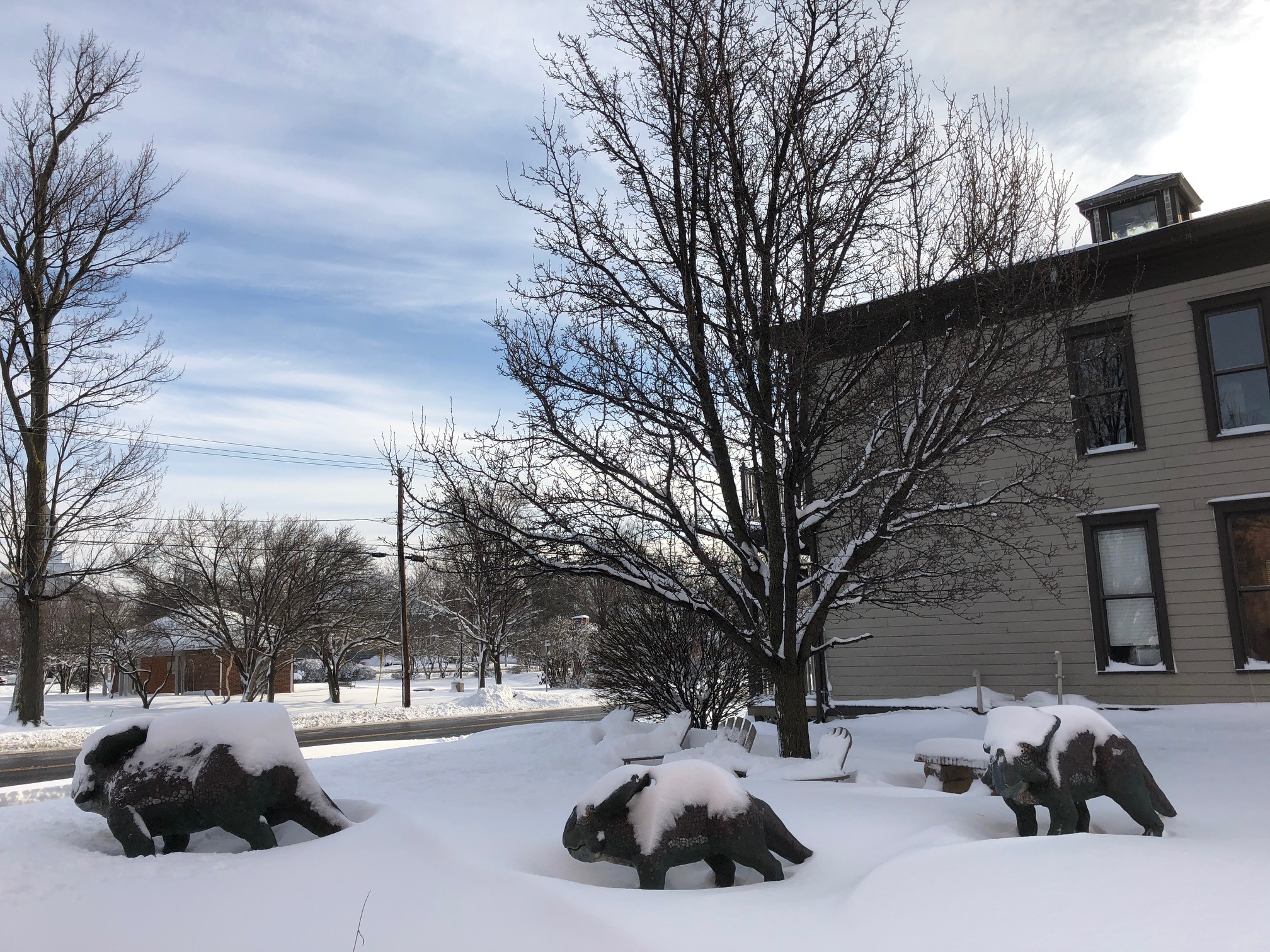 At the library, my boss Glenna’s office has a great view of the Dinosaur Garden Lawn.