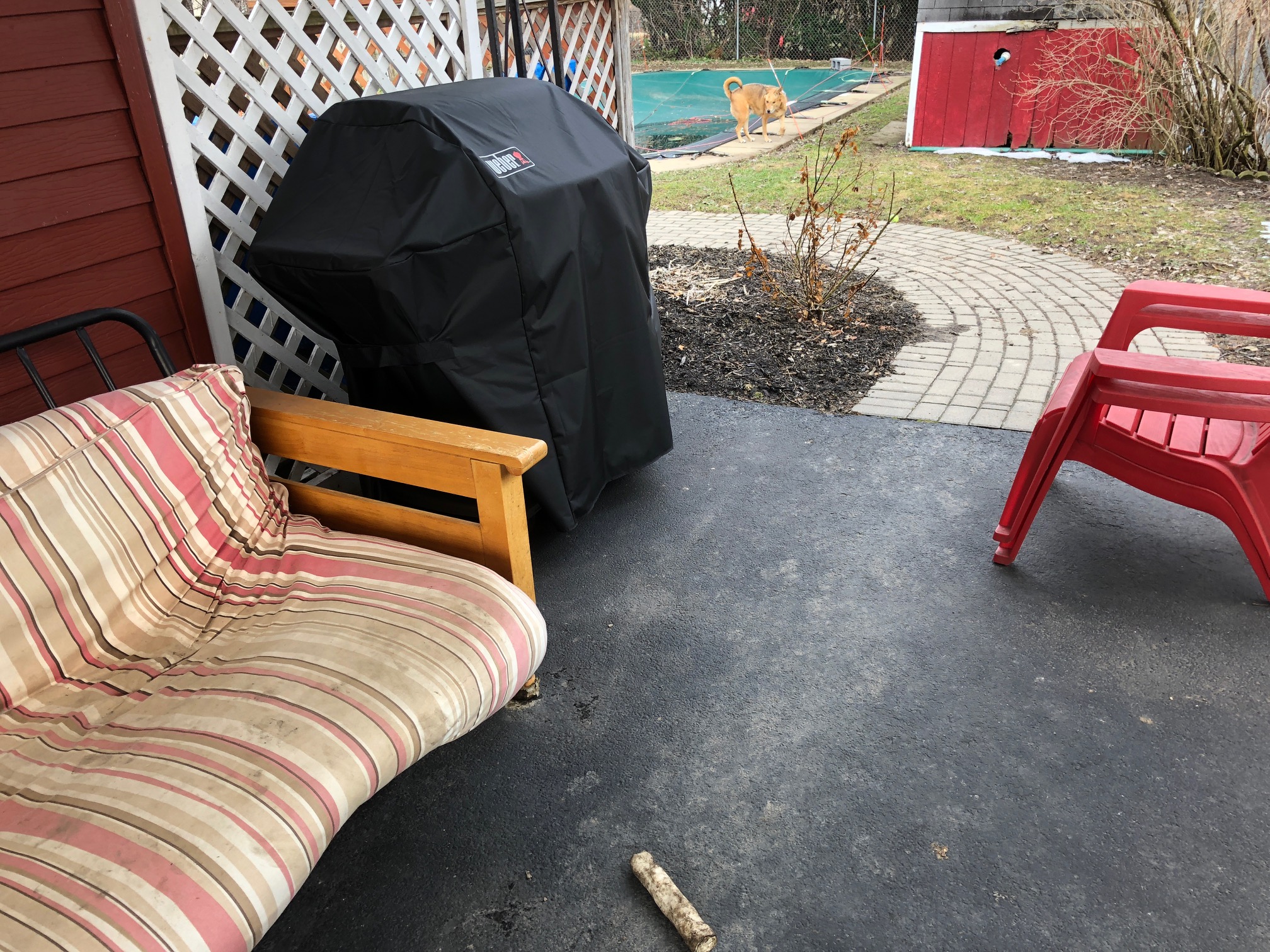 The covered alcove does not escape this sharp dog’s attention, either. She soon barks her orders.