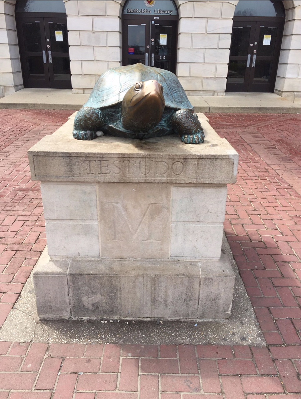 He caught the statue of Testudo that stands guard outside the library at one end of the beautiful quad.