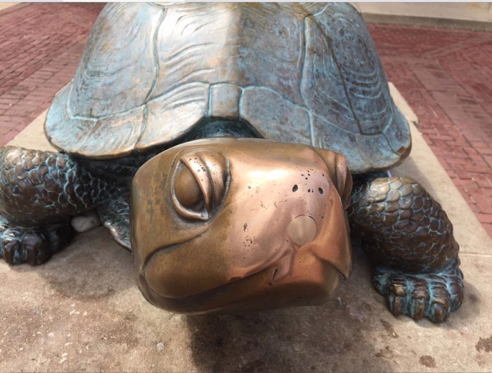 Yes, it’s apparent that students and other roamers of this campus follow the legend that good luck comes from rubbing Testudo’s nose. Bake joked to me that the current crop told him that all the good fortune had been sapped from this statue in the last quarter of the former century. Yes, I did have my share. I got my Bachelor’s in journalism!