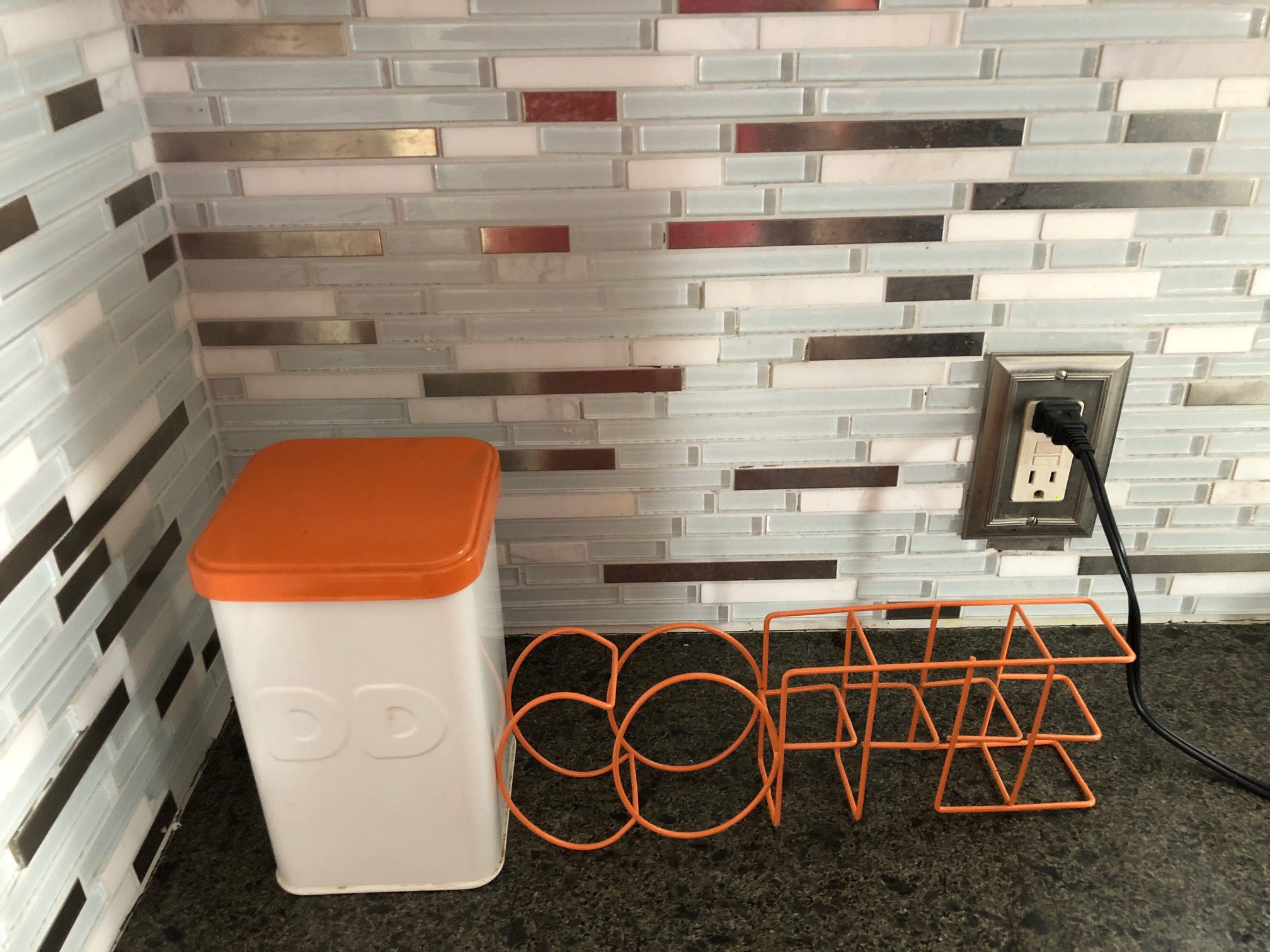 That Coffee piece fits well with our Dunkin‘ Donuts canister of daily ground, we think.