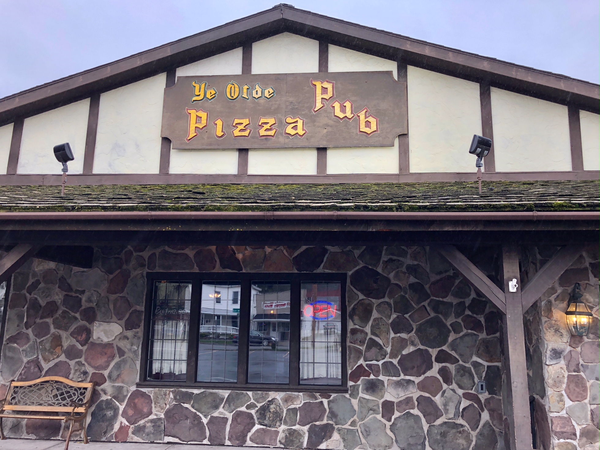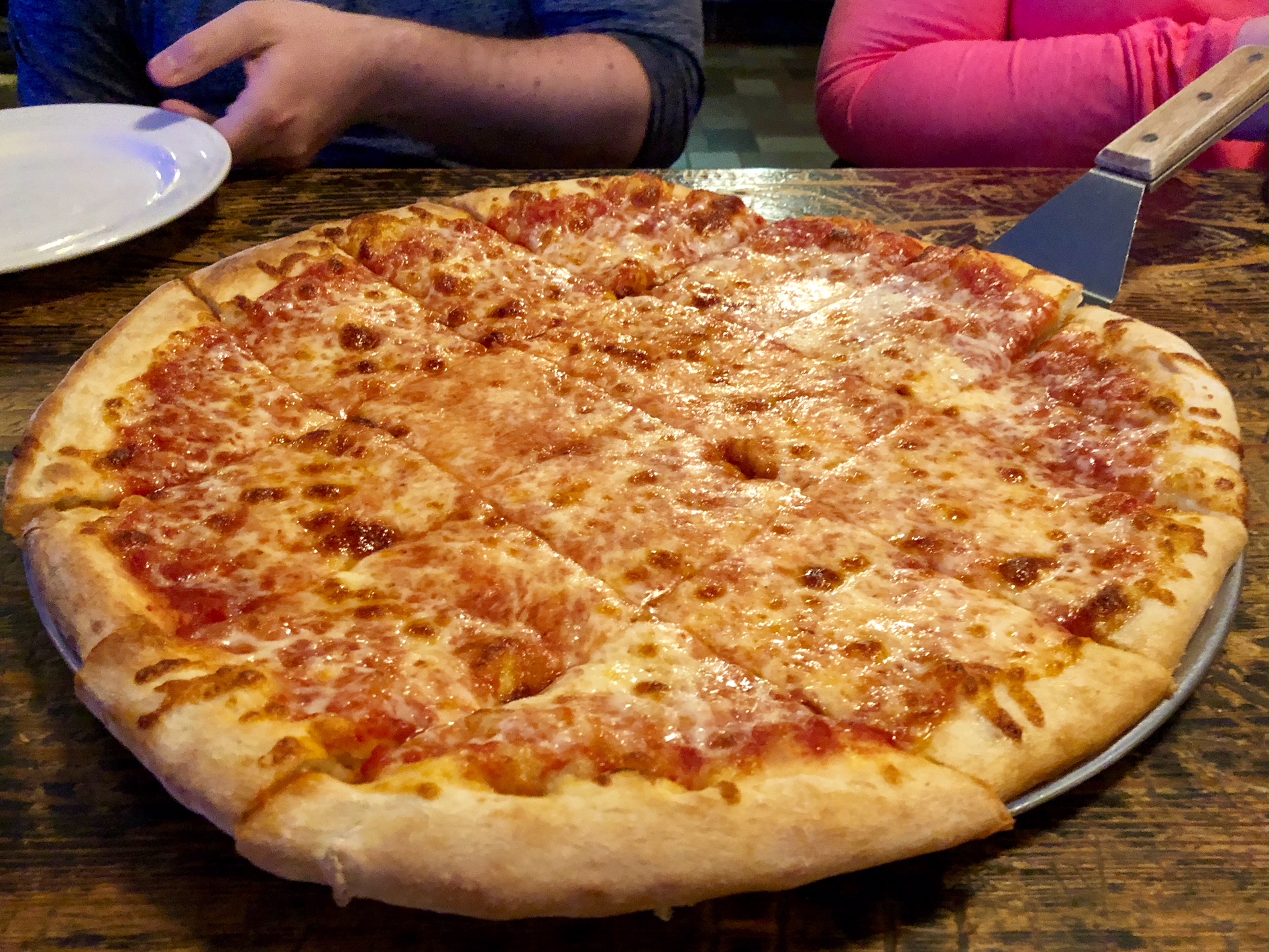 Elisabeth gladly served him slices from Ye Olde Pizza Pub’s delicious large pie.