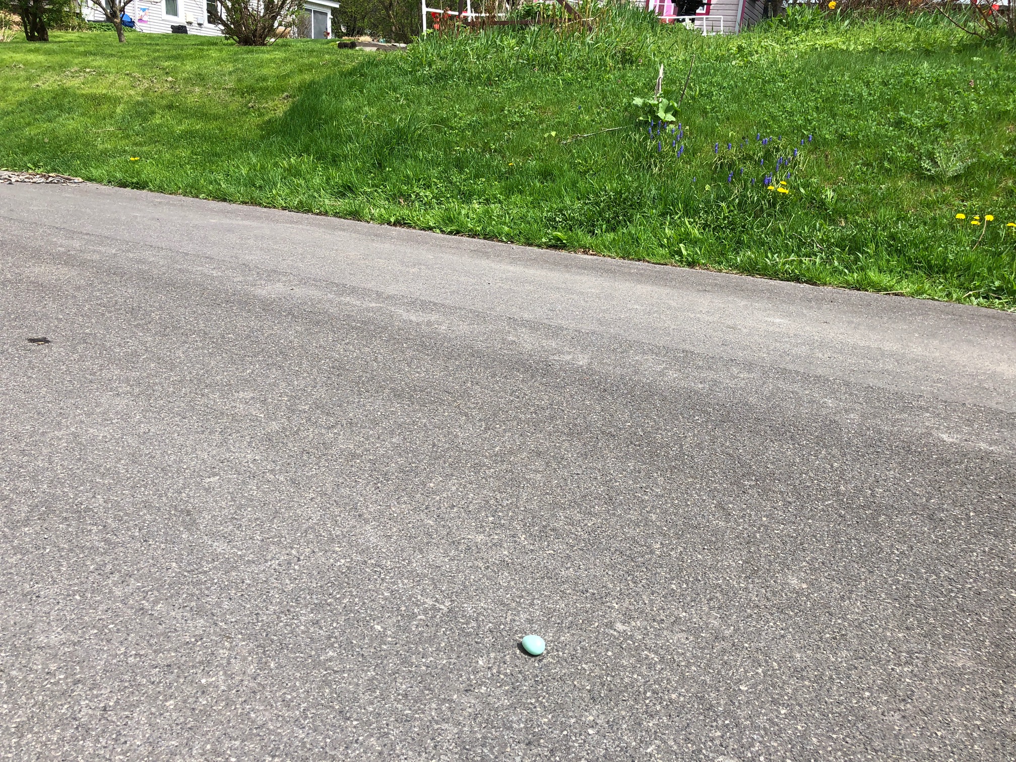 A single bird’s egg sat, sad and alone, in the middle of the pavement.