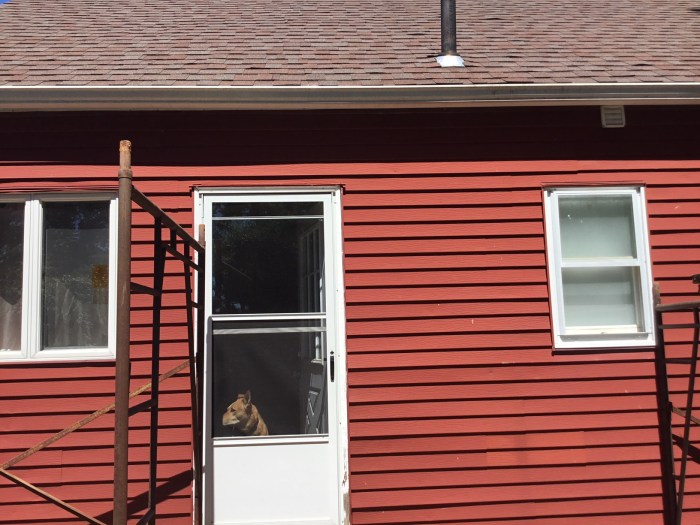 Even Ellie B aka Dogamous Pyle had to look over the equipment that Joe Bury brought to take care of our gutter/fascia problem.