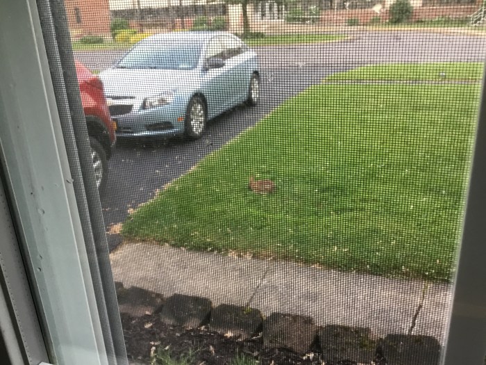 So we get the cute little rabbit shot through the screen. I knew I could open the front door and approach or Bugs would hop away.