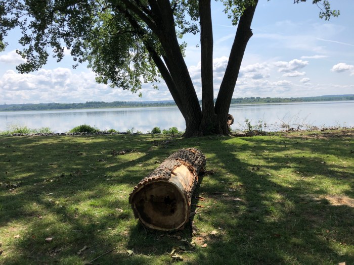 At Onondaga Lake Park, the shoreline has some stately trees.