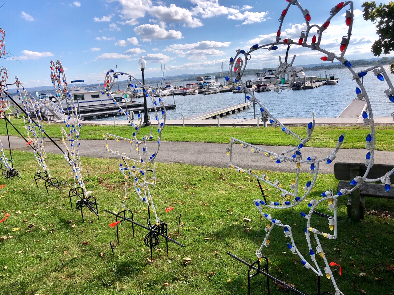 The lights were not quite all put up for the upcoming Lights on the Lake extravaganza.