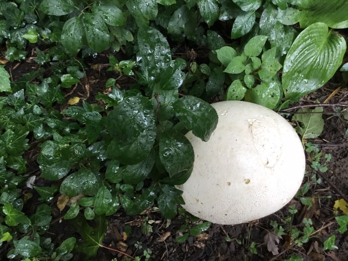 2. We had a whole lot of those this year. The good news is that Cody didn’t show any interest in them, and the bunnies and squirrels seemed to be eating them and doing ok, but hubby dug them all out anyway. Then we got a crop of really nasty looking not-round mushrooms with bright yellow undersides, and dug those out. I looked those up, and it seems they are not only edible, but are considered a delicacy. I’m not chancing it anyway. Hopefully, you got yours dug out before Ellie got to it.