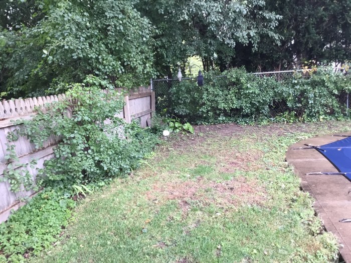 1. Glad you caught that. Sadie doesn’t show any interest in the mushrooms out front, (there are lots every fall) but we check that they’re not in the back, because she is sometimes unattended there.