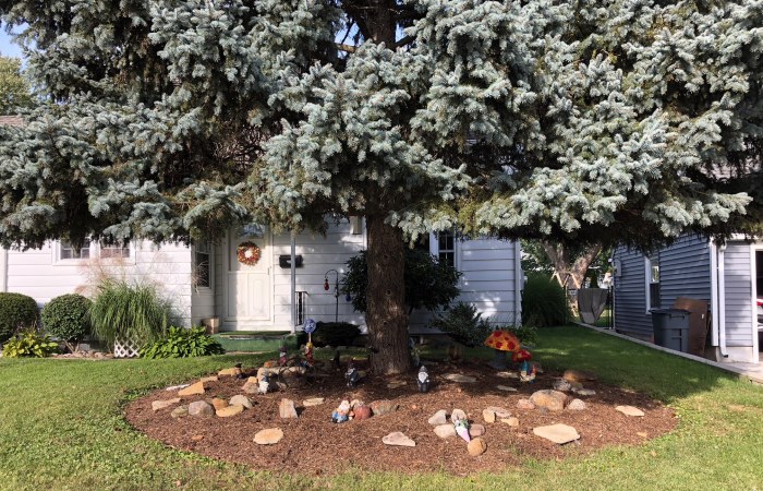 A walk around our the blocks of our Liverpool neighborhood of Galeville with my dear wife Karen and our cherished rescue mutt Ellie B aka Dogamous Pyle revealed a front-yard village that we won’t replicate at A Bitty Better.