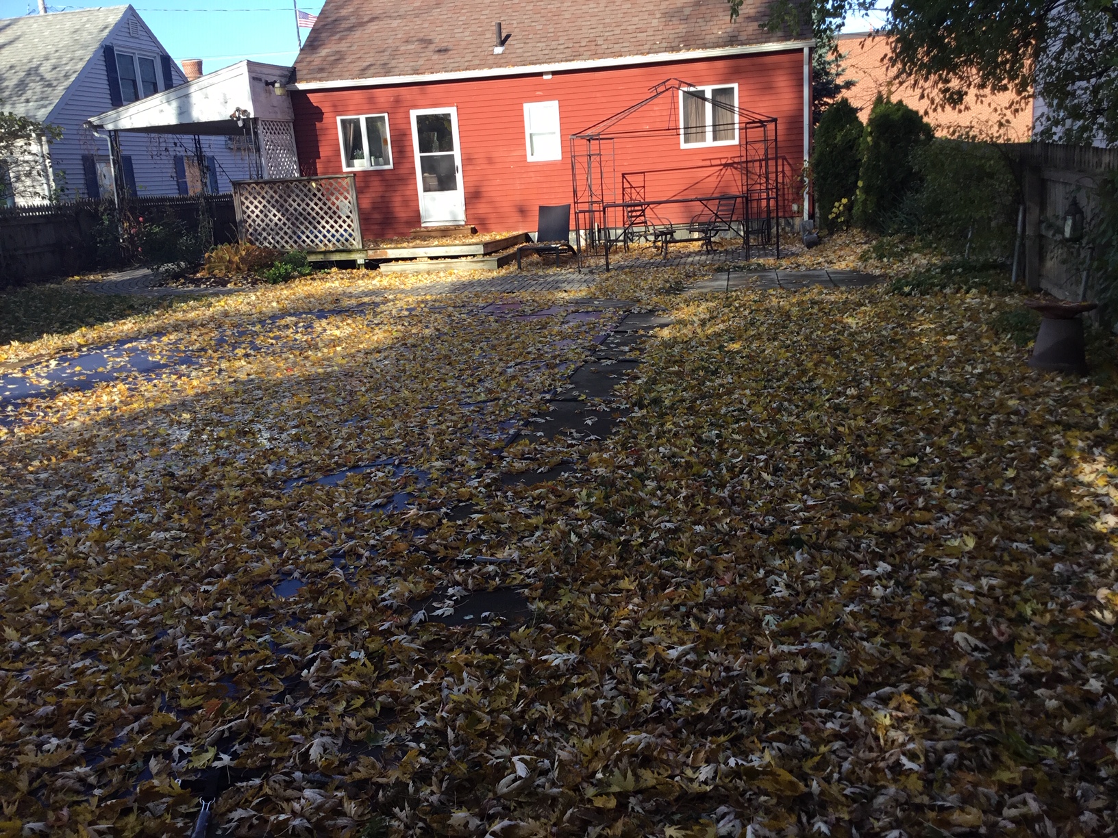 Besides, a month had gone by, and the grass underneath all those leaves was a bit shaggy, too. On I went Saturday morning, back and front.
