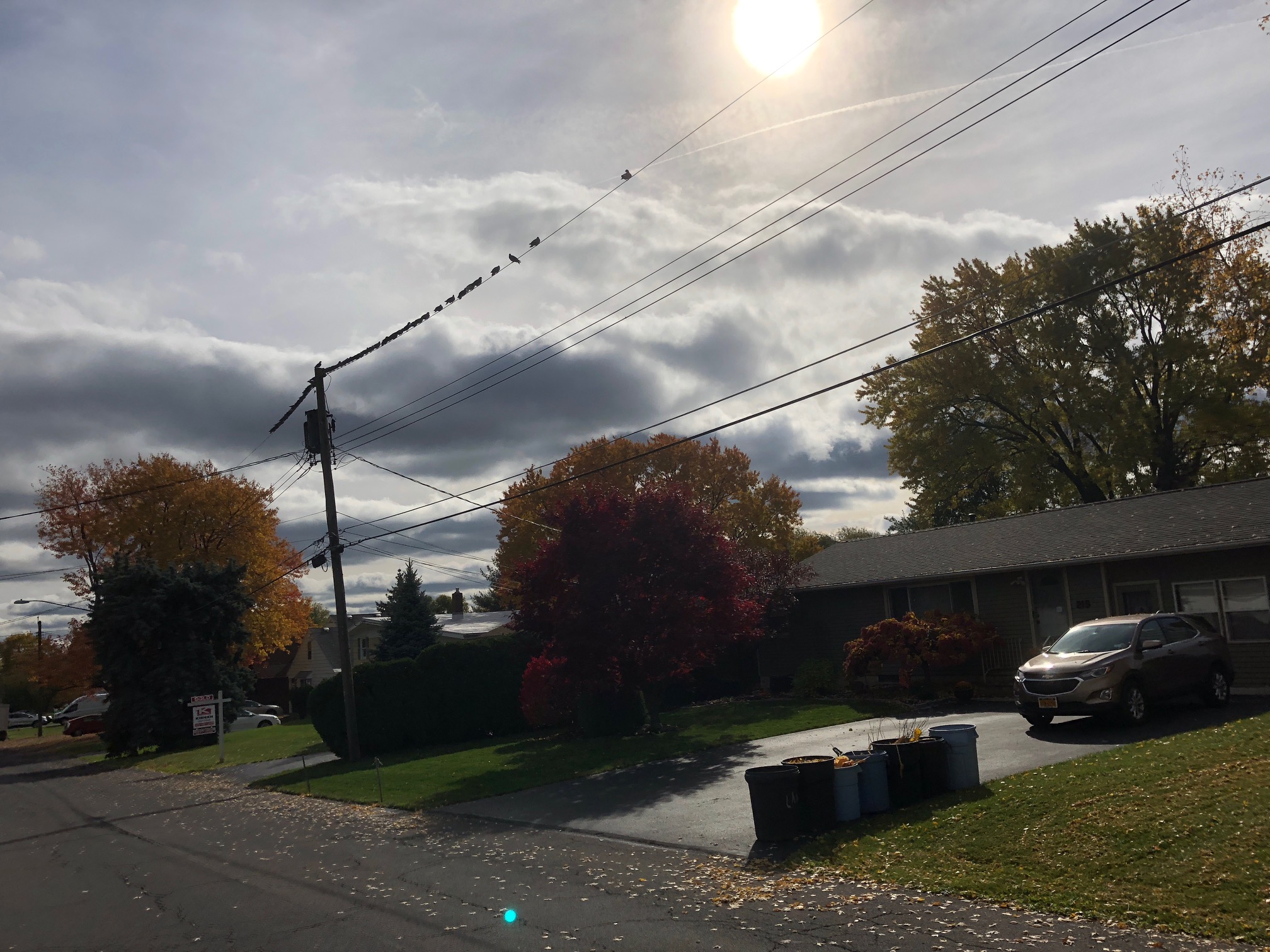 In a November neighborhood walk with our cherished rescue mutt Ellie B aka Dogamous Pyle, we came upon a high wire full of resting birds.