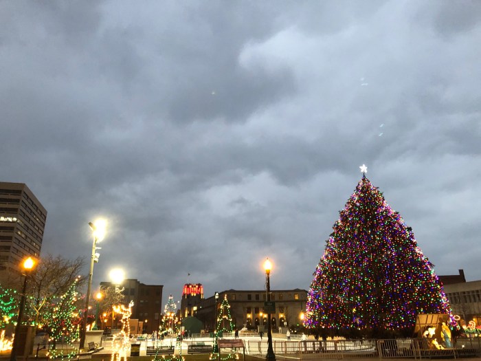 I was glad to see the big tree was still up in Clinton Square. This time, I admired it from a distance.