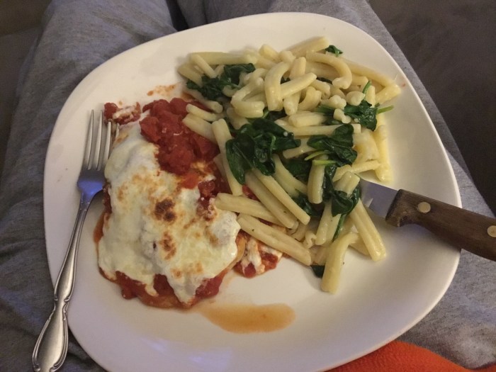 Chicken parm in a skillet was the way Marley and Me instructed my dear wife Karen to prepare our third and final freebie from the big box.