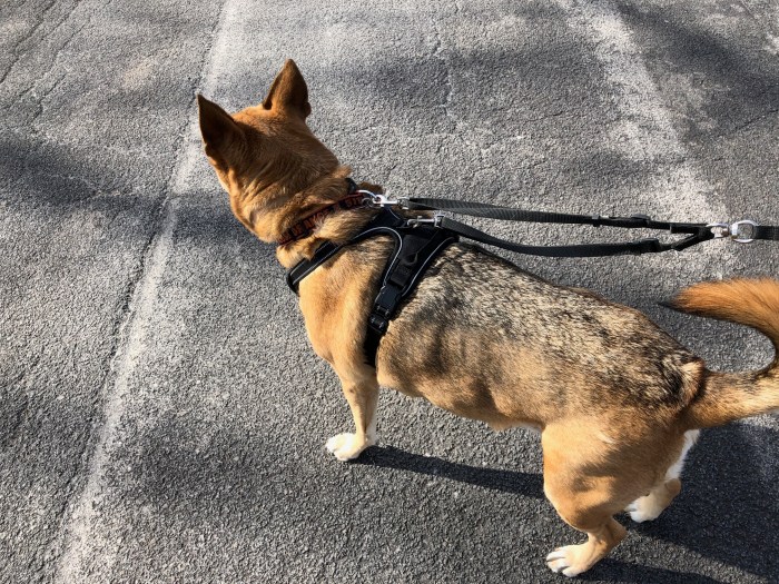 Pretty girl! Good harness! I have a Shepherd mix that is strong and likes to pull. I use a harness similar to that on trails.