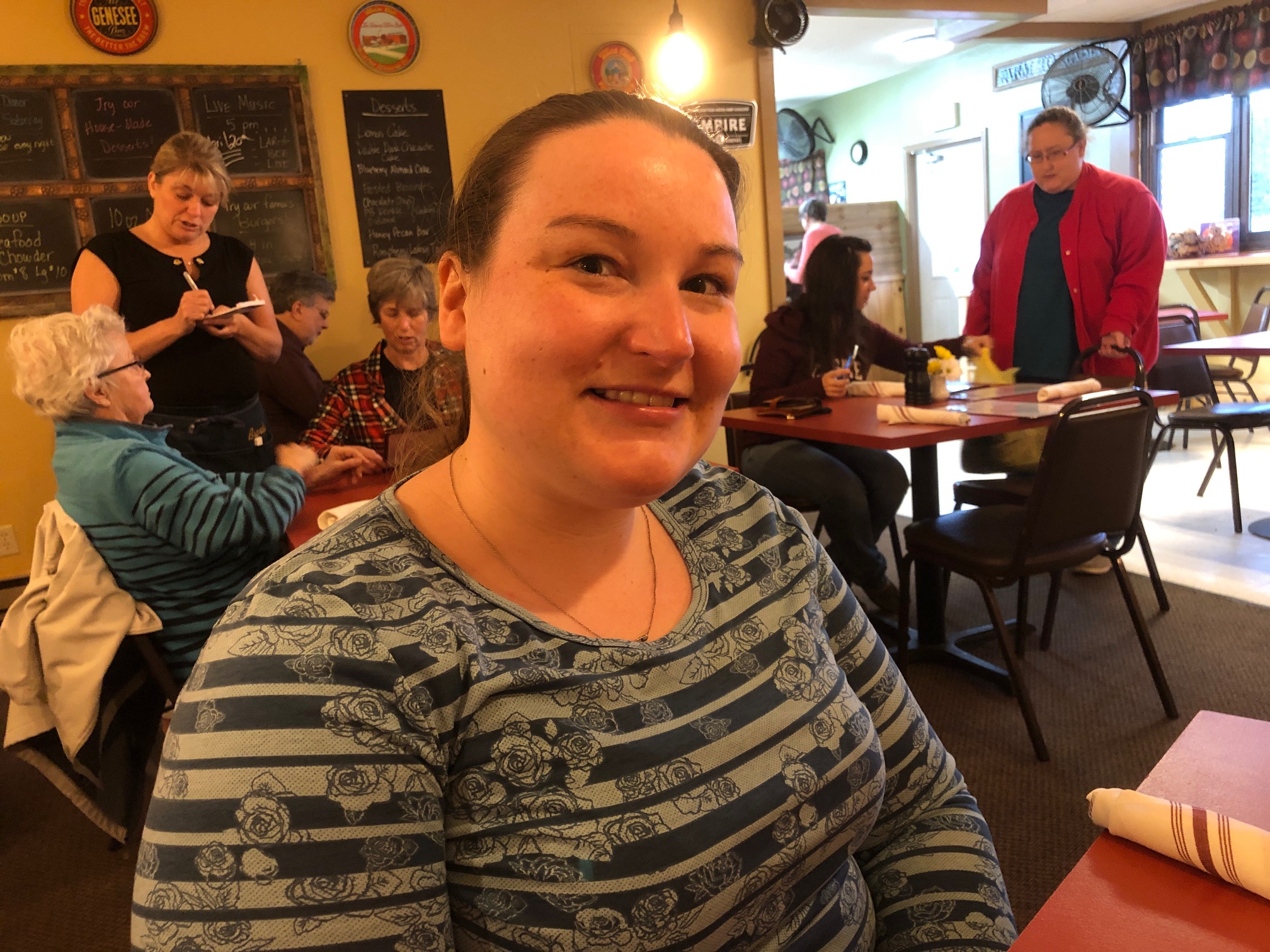 Karen and I arrived first and picked the table. Elisabeth joked that their favorite waitress took service because she knew I was her father with just one look.
