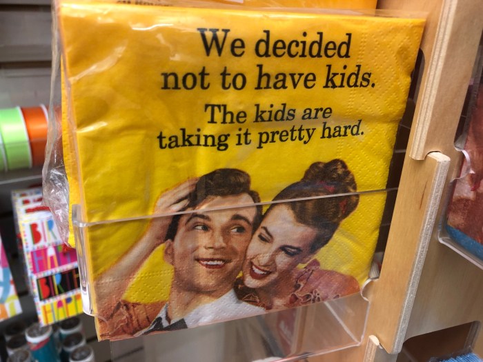 Some bar napkins made me laugh, but, you know, we don’t use bar napkins.