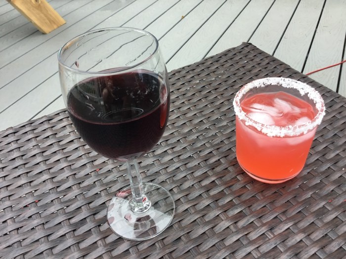On the deck, I enjoyed a wine of Cabernet Sauvignon vintage while she chose a pre-mixed tequila pour.