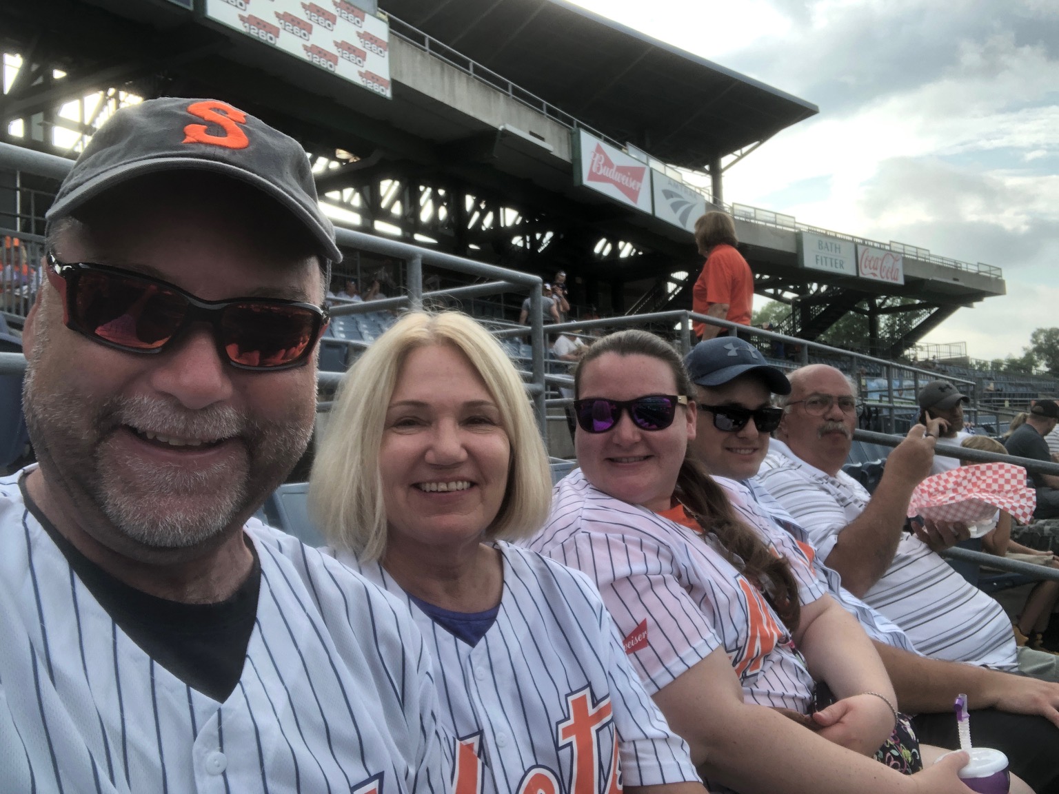 My terrific daughter Elisabeth suggested we all go the Syracuse Mets game not just to see the baseball but to get the replica game day jerseys they were handing out to the first 2,000 people who showed up.