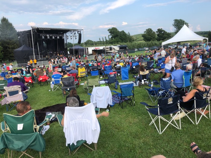 This was our first trip to the apple orchard in Lafayette for a show out in their fields. We’d gone for the apple ambiance. We were impressed by the concert set-up.