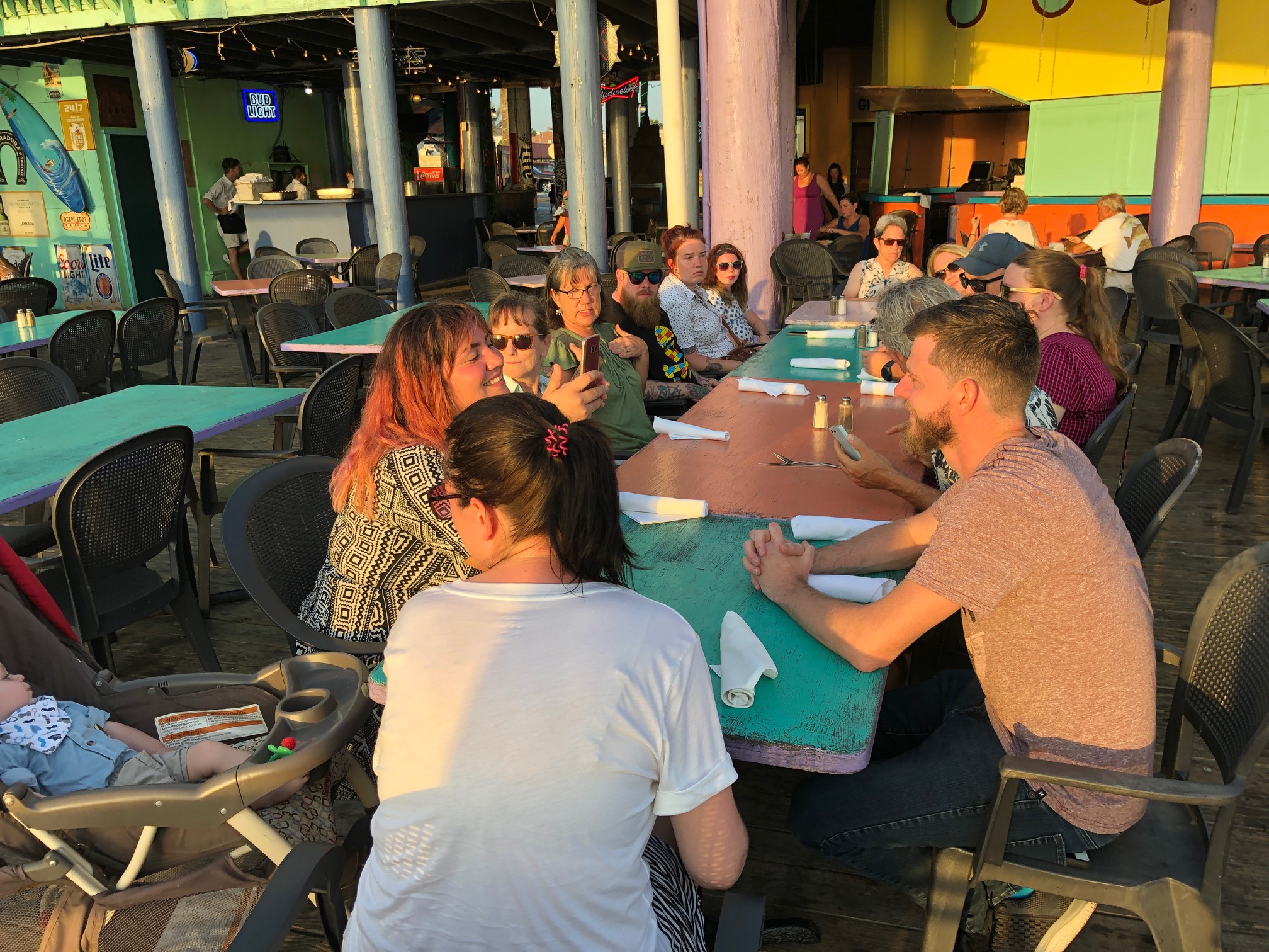 One table down, the big party had a table cloth. We did not. No problem for any of us. The other party looked like they might be celebrating a wedding rehearsal. We were awaiting the arrival of my brother-in-law Scott any minute and the impending sunset. What a great spot.