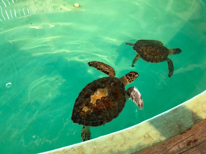 A walk to a covered outdoor area brought us to the turtles going through rehab with hopes for release to the wild. Some empty tanks told of success.