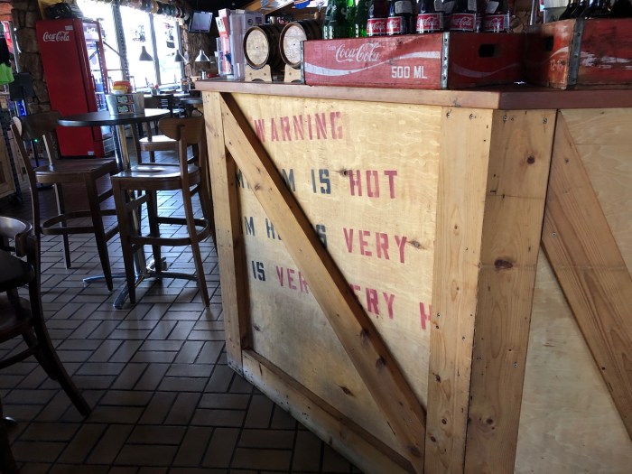Even the Carolina Gold wings (think honey mustard) were hotter than what I’d thought when I ordered. I ate them all, though, now prepped for our drive east on the New York State Thruway.