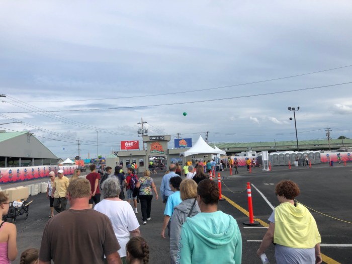 After the short and easy drive down the highway, we saw on State Fair Boulevard that no longer were the fleet of buses pulling into main Gate 1. Down west we went to the far reaches. The bus lot was bigger and more easily navigated by the bus once inside. OK, I thought. Off we walked to the new gate.