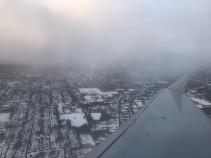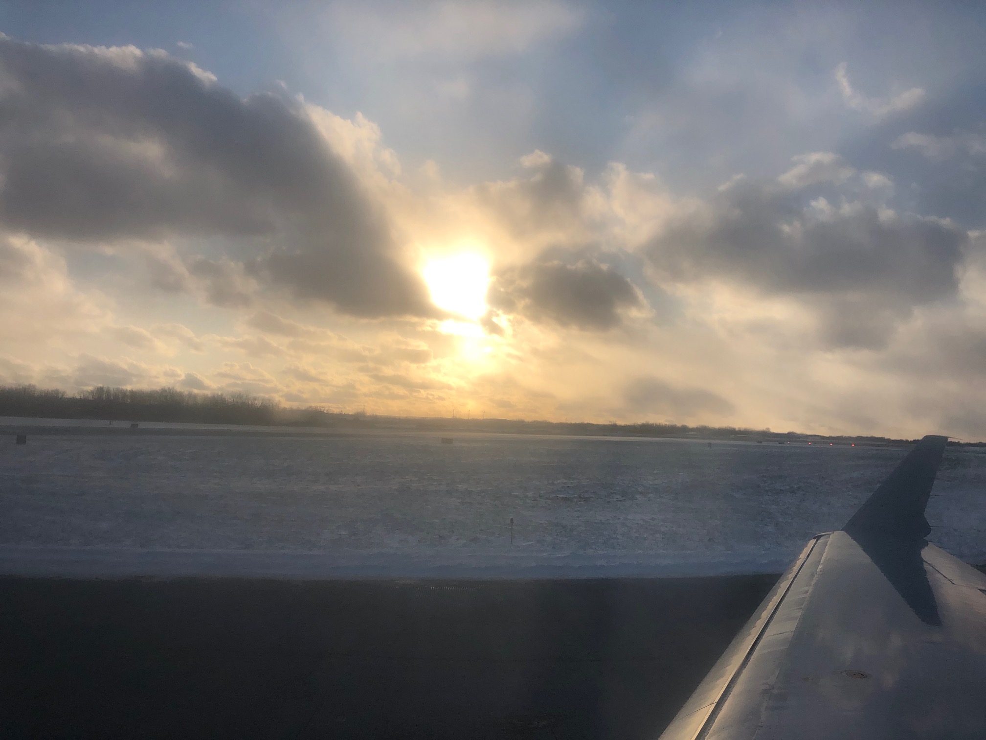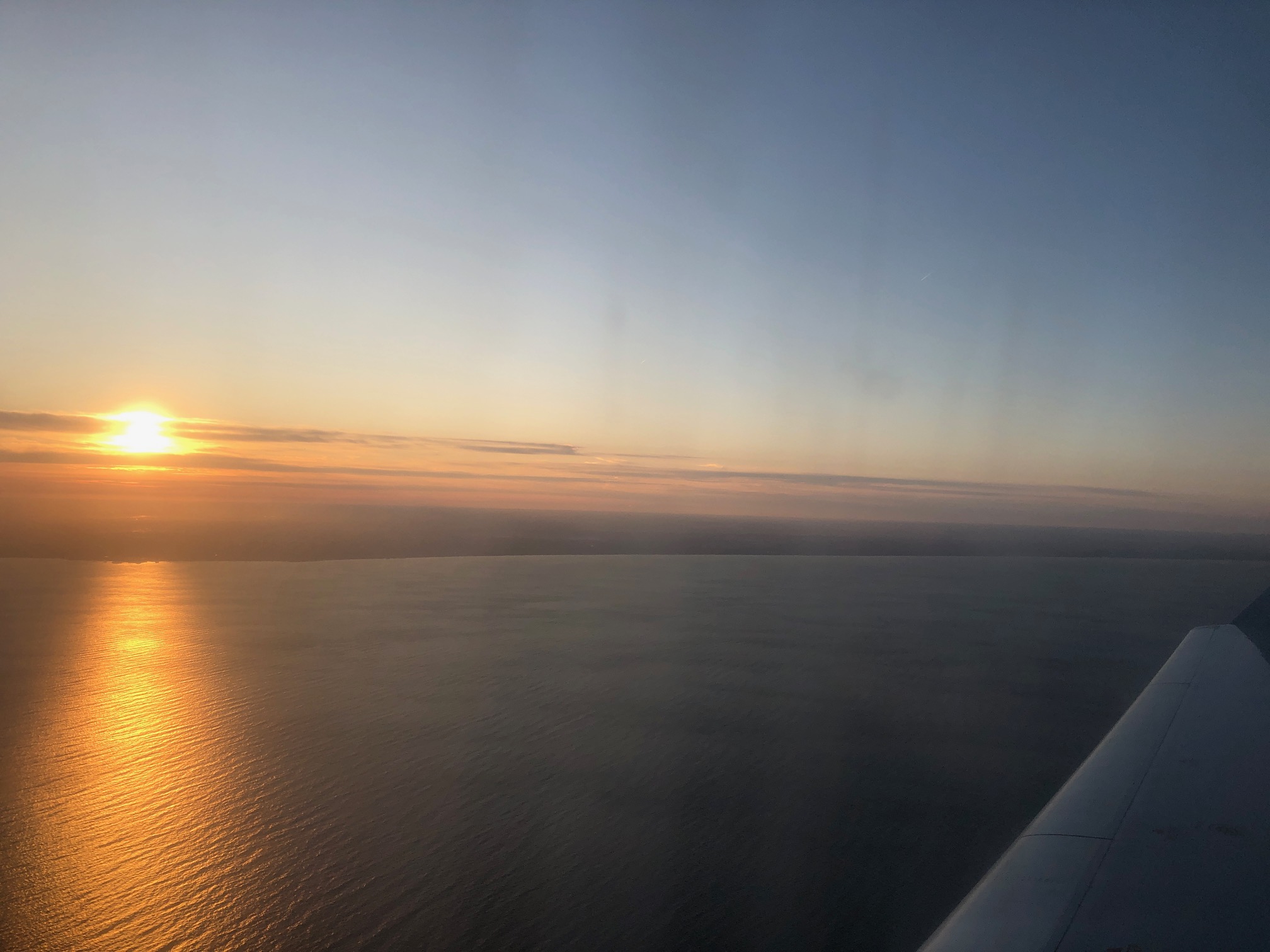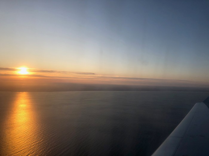 When I boarded the plane at Syracuse’s Hancock International Airport on Tuesday, the sun was getting ready to say so long for the day over the wing.