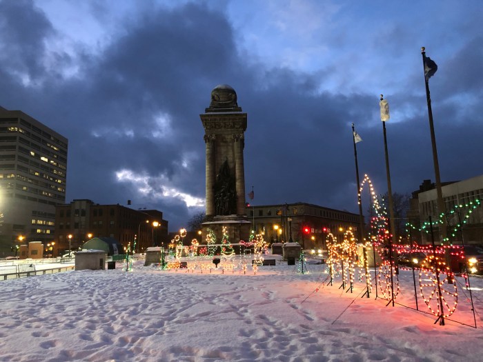 Put that Soldiers and Sailors monument amid the lights and glorious sky, and there’s your reflective holiday moment for the day.