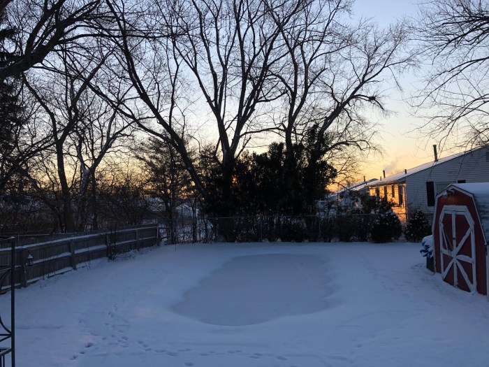 We’re back to the snow-looks-pretty in the backyard here our Galeville neighborhood in Liverpool.
