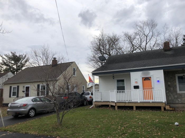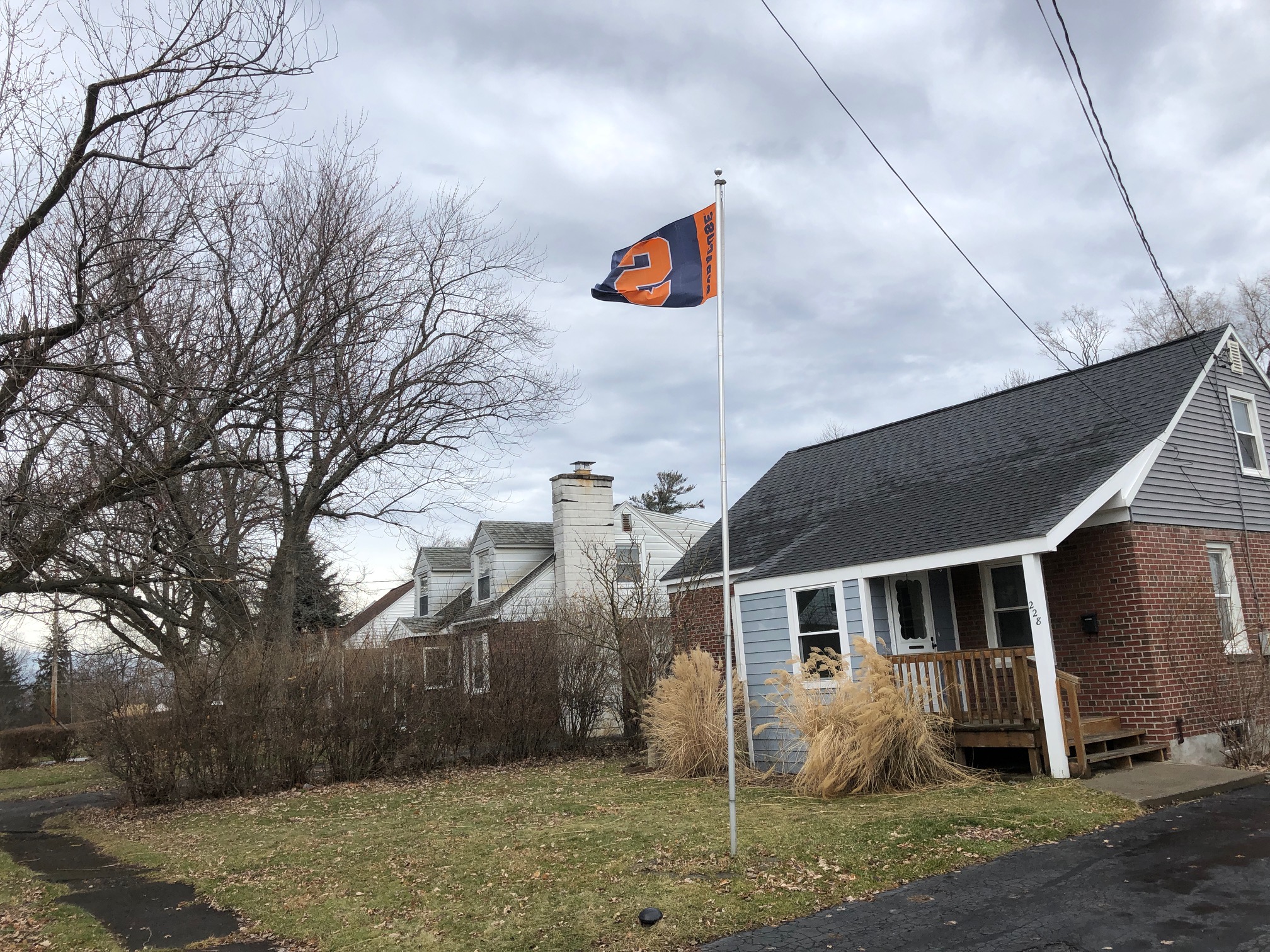 A recent walk with my dear wife Karen and cherished rescue mutt Ellie B aka Dogamous Pyle spotted a Syracuse Orange flag standing out in the wind.