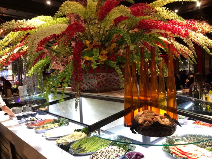 A bountiful salad bar, which also included lobster bisque, was included. All-dinner price for each: $44.99.