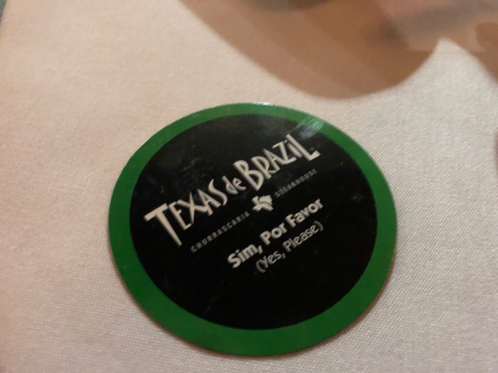 Turn the token to the green side and the folks carrying meat on a big stick would stop tableside and slice it for you.