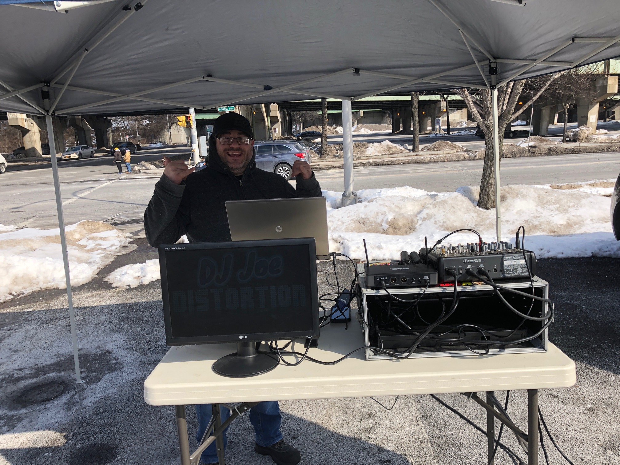 He kept the parking lot dance floor moving until he handed out karaoke mikes. Wow. No, I didn’t.