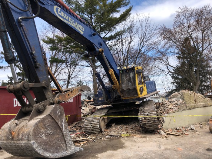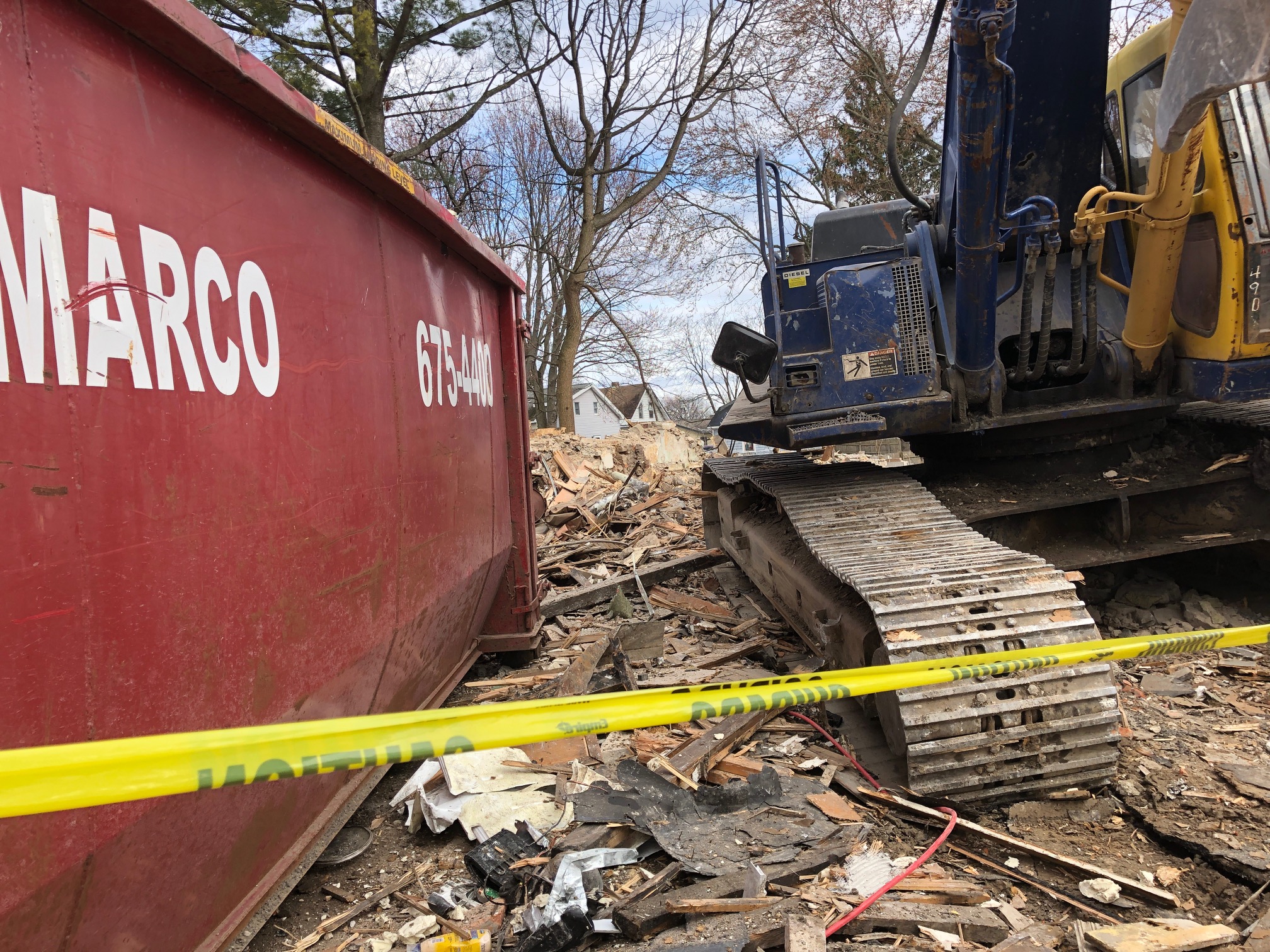 The day after the clatter and shake, the crew is gone, the house is down, the remnants of that burned house remain.