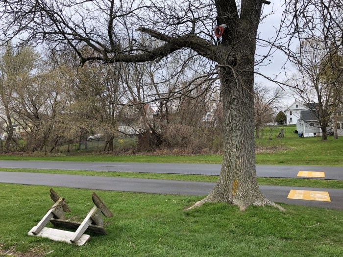 The bench can be overturned and something can be plugged into that cord at Onondaga Lake Park.