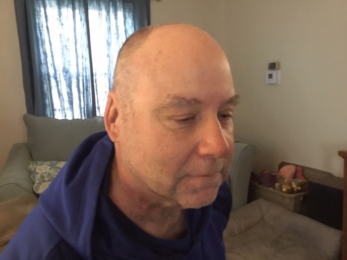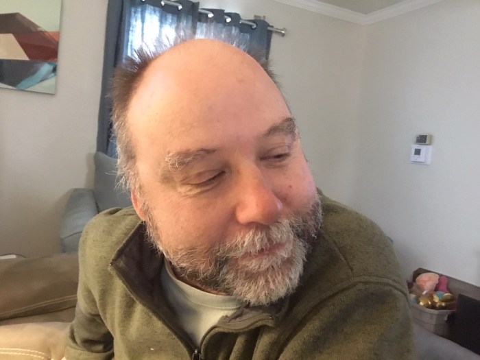I took care of the beard myself, with some cleanup work with scissors around the ‘stache from my dear wife Karen. She declared that I’d done better than the first time attempt four weeks prior. Confidence does breed excellence, I declared. Well, competence, at least. Don’t worry, Theresa.