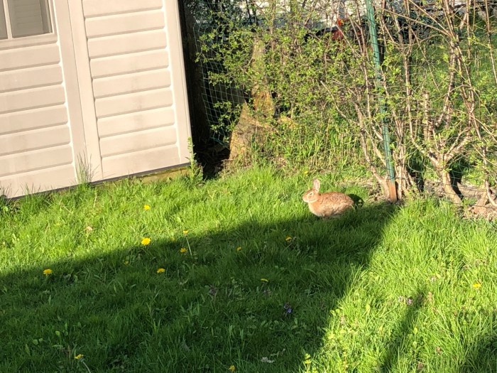 While appreciating a safe barbecue in our great friend and neighbor Georgia’s backyard, I spotted a rabbit in an adjacent yard.